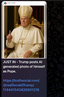 By posting a picture of himself as Pope Donald Trump is trying to position himself as undisputed leader of the West. He has put his hat in the papal ring because a showdown over who rules the West has begun.
